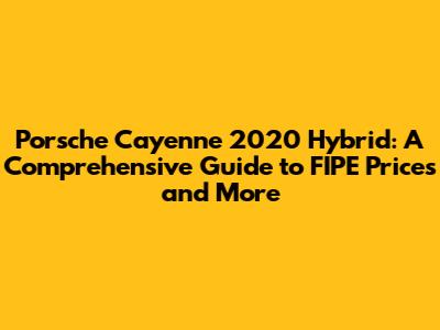 Hey car enthusiasts! Are you guys curious about the Porsche Cayenne 2020 Hybrid? It's a fantastic SUV that seamlessly blends luxury, performance, and eco-friendliness. Today, we're diving deep into the FIPE (Fundação Instituto de Pesquisas Econômicas) price guide for this model, and we'll also explore what makes this hybrid such a compelling choice. Buckle up, because we're about to embark on a journey through the world of the Cayenne Hybrid!