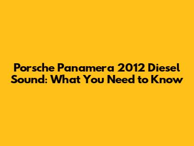 Understanding the Porsche Panamera 2012 Diesel Sound