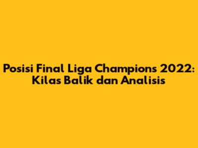 Posisi final Liga Champions 2022 menjadi sorotan utama bagi para penggemar sepak bola di seluruh dunia. Pertandingan puncak yang sangat dinanti-nantikan ini mempertemukan dua tim terbaik Eropa dalam sebuah pertempuran sengit memperebutkan gelar juara. Mari kita telusuri lebih dalam mengenai perjalanan kedua tim menuju final, performa mereka sepanjang musim, serta momen-momen krusial yang menentukan hasil akhir. Kita akan menggali strategi yang diterapkan, pemain kunci yang menjadi pahlawan, dan bagaimana pertandingan tersebut membentuk sejarah sepak bola.