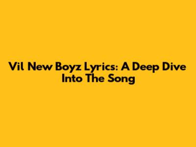 Vil New Boyz Lyrics: A Deep Dive Into The Song