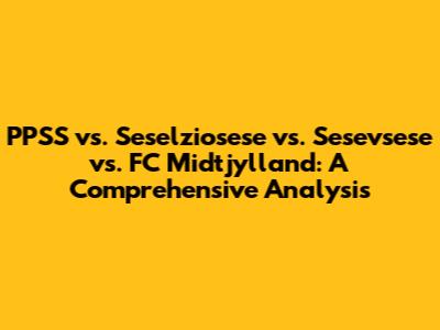 Hey guys, let's dive into a thrilling comparison! We're talking about PPSS, Seselziosese, Sesevsese, and FC Midtjylland. It's like a clash of titans, right? We're going to break down everything you need to know about these teams. Get ready for an in-depth analysis that covers their histories, playing styles, key players, and what makes each of them tick. Whether you're a die-hard fan or just curious, this is your one-stop guide to understanding these football powerhouses. This isn't just a simple rundown; we're going deep, uncovering the strategies, the triumphs, and the challenges each team faces. So, grab your popcorn, and let's get started. We'll explore their strengths, weaknesses, and the unique aspects that set them apart. This article is your ultimate resource for understanding the dynamics of these teams, their impact on the field, and the stories behind their success. We'll examine their past performances, their current form, and what the future might hold. It's going to be an exciting ride, and you won't want to miss a single detail. We'll also look at the rivalries, the memorable matches, and the moments that have defined their legacies. Let's start with PPSS and then compare it to the others.