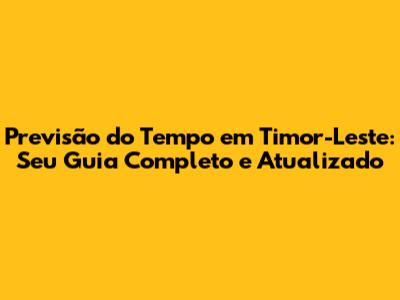 Para obter a previsão do tempo mais precisa e atualizada para Timor-Leste, você pode consultar diversas fontes. Aqui estão algumas dicas e recursos úteis:
