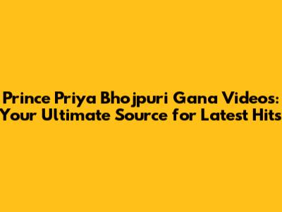 Exploring the Latest Prince Priya Bhojpuri Gana Hits