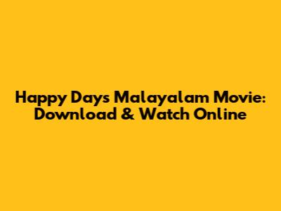 Happy Days Malayalam Movie: Download & Watch Online