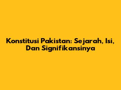 Konstitusi Pakistan: Sejarah, Isi, Dan Signifikansinya