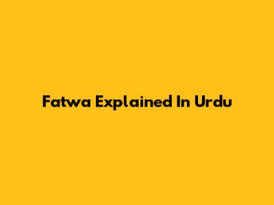Fatwa Explained In Urdu