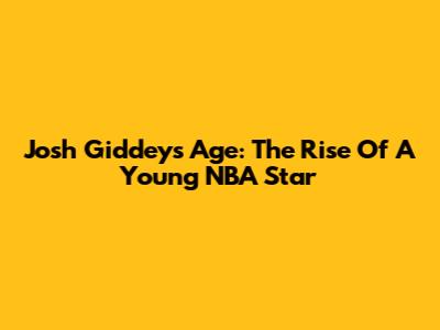 Josh Giddey's Age: The Rise Of A Young NBA Star
