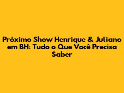 Fala, galera! Se você é fã de sertanejo e está ansioso para o próximo show de Henrique e Juliano em BH, você chegou ao lugar certo! Neste artigo, vamos te dar todas as informações que você precisa: datas, locais, preços dos ingressos e dicas para não perder essa festa incrível. Prepare-se para cantar a plenos pulmões os sucessos da dupla que conquistou o Brasil. Bora lá?