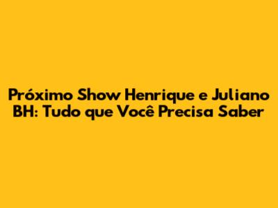 Quando e Onde Será o Próximo Show de Henrique e Juliano em BH?