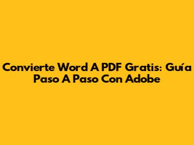Convierte Word A PDF Gratis: Guía Paso A Paso Con Adobe