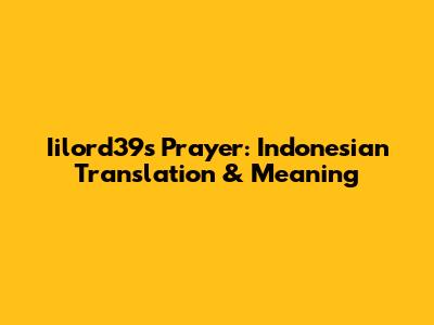 Iilord39's Prayer: Indonesian Translation & Meaning