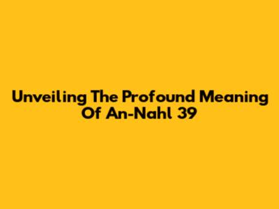 Unveiling The Profound Meaning Of An-Nahl 39