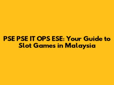 Understanding PSE PSE IT OPS ESE Slot Games