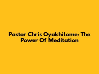 Pastor Chris Oyakhilome: The Power Of Meditation