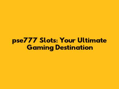 Getting Started with pse777 Slots: A Simple Guide