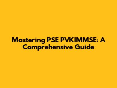 Mastering PSE PVKIMMSE: A Comprehensive Guide