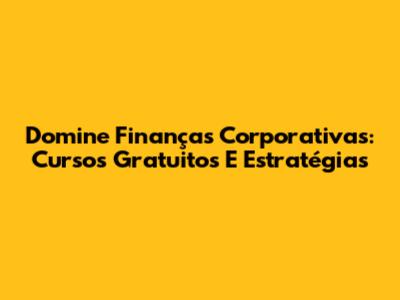 Domine Finanças Corporativas: Cursos Gratuitos E Estratégias