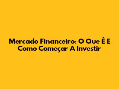 Mercado Financeiro: O Que É E Como Começar A Investir