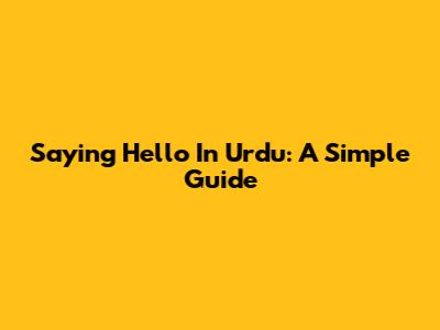 Saying Hello In Urdu: A Simple Guide