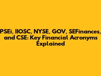 Understanding the world of finance requires familiarity with various acronyms and abbreviations. Let's break down some key terms: PSEi, IIOSC, NYSE, GOV, SEFinances, and CSE. This article will explore each of these, providing context and clarifying their significance in the financial landscape. Grasping these terms is crucial for anyone involved in investing, trading, or simply following financial news. So, let's dive in and demystify these essential acronyms, making the complex world of finance a bit more accessible for everyone. Whether you're a seasoned investor or just starting, understanding these basics can significantly improve your financial literacy and decision-making. We'll cover everything from what each acronym stands for to its role in the broader financial ecosystem. Stay tuned as we unravel these important financial terms, one by one. Get ready to boost your financial knowledge and confidently navigate the markets!