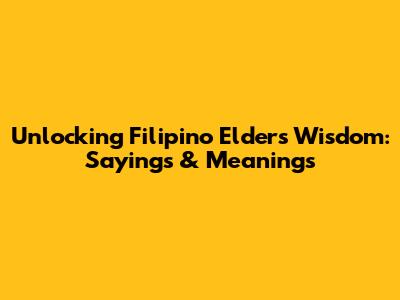 Unlocking Filipino Elders' Wisdom: Sayings & Meanings