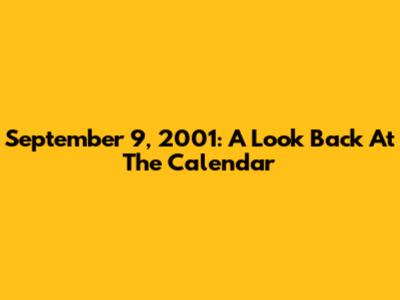 September 9, 2001: A Look Back At The Calendar