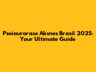 Hey everyone! Are you ready to dive deep into the fascinating world of Pseiaurorase Aksnes Brasil 2025? If you're anything like me, you're probably buzzing with curiosity about this event. In this article, we'll break down everything you need to know. Let's get started, shall we?