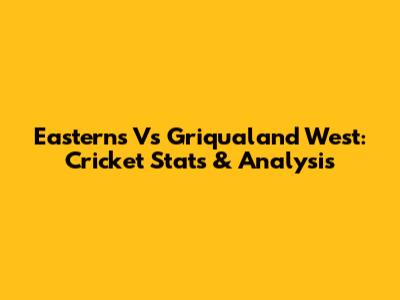 Easterns Vs Griqualand West: Cricket Stats & Analysis