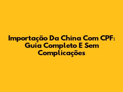 Importação Da China Com CPF: Guia Completo E Sem Complicações