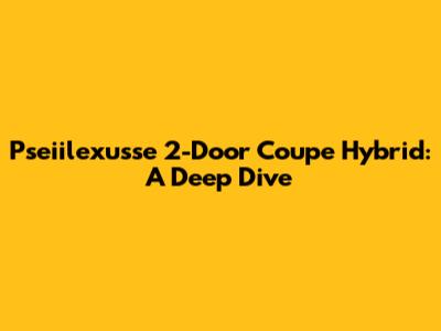 Hey guys! Let's talk about the Pseiilexusse 2-Door Coupe Hybrid. This car is a head-turner, a blend of sleek design, and eco-friendly technology. This article is your ultimate guide, covering everything from the specs and performance to common repair issues and what makes it a standout in the hybrid coupe market. Get ready for a deep dive, alright?
