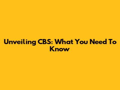Unveiling CBS: What You Need To Know