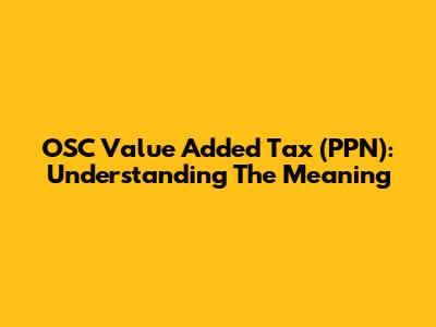 OSC Value Added Tax (PPN): Understanding The Meaning