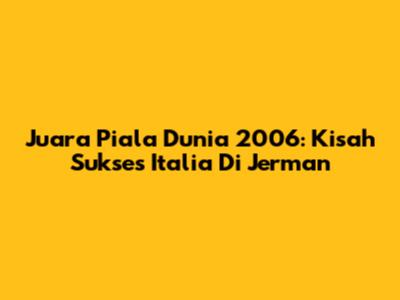 Juara Piala Dunia 2006: Kisah Sukses Italia Di Jerman