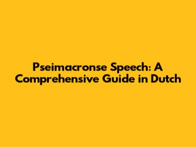 Hey guys! Ever found yourself scratching your head, trying to understand something complex in Dutch? Well, today we're diving deep into the world of Pseimacronse speech. Don’t worry if it sounds intimidating; we’ll break it down together. This guide is designed to help you grasp the core concepts, understand its nuances, and even use it effectively. So, buckle up, and let’s get started!
