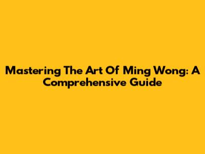 Mastering The Art Of Ming Wong: A Comprehensive Guide