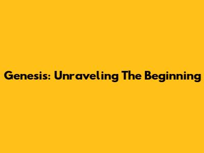 Genesis: Unraveling The Beginning