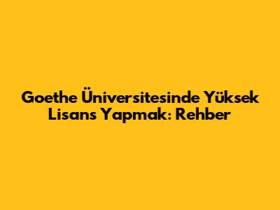Goethe Üniversitesi'nde Yüksek Lisans Yapmak: Rehber