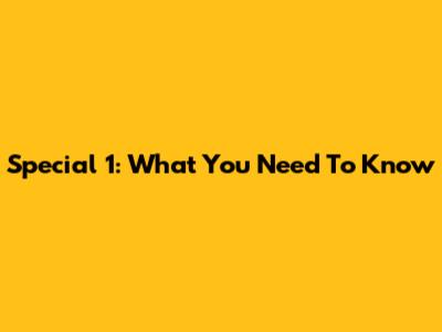 Special 1: What You Need To Know