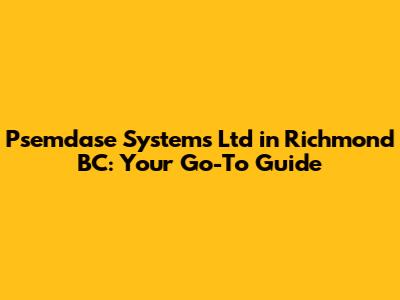 Alright, guys, let's dive into everything you need to know about Psemdase Systems Ltd in Richmond, BC. If you're looking for top-notch tech solutions, this is one name you'll definitely want to keep on your radar. We're going to break down who they are, what they do, and why they might just be the perfect fit for your needs. So, buckle up and let's get started!