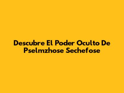 Descubre El Poder Oculto De Pselmzhose Sechefose