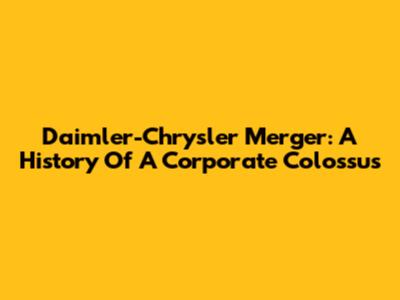 Daimler-Chrysler Merger: A History Of A Corporate Colossus