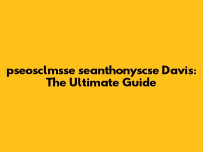 Hey guys! Today, we're diving deep into everything you need to know about pseosclmsse seanthonyscse Davis. Buckle up, because this is going to be a comprehensive journey. We'll explore the origins, key concepts, practical applications, and future trends. Whether you're a beginner or an expert, there's something here for everyone. Let's get started!