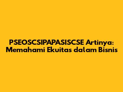 PSEOSCSIPAPASISCSE adalah singkatan yang mungkin terdengar asing bagi sebagian orang, tetapi sebenarnya merujuk pada konsep penting dalam dunia bisnis, yaitu ekuitas. Dalam artikel ini, kita akan membahas secara mendalam mengenai apa itu ekuitas, mengapa hal itu penting, dan bagaimana cara menghitungnya. Jadi, mari kita mulai perjalanan untuk memahami lebih dalam tentang ekuitas dan perannya dalam kesehatan finansial suatu perusahaan.