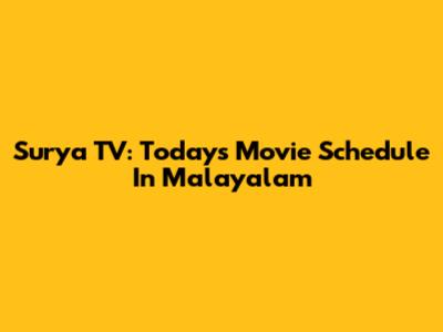 Surya TV: Today's Movie Schedule In Malayalam