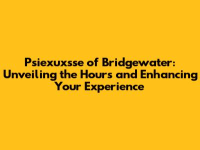 Hey there, fellow Bridgewater enthusiasts! Are you trying to figure out the Psiexuxsse of Bridgewater hours? Look no further, because we're diving deep into everything you need to know about this awesome spot. We'll explore the operating hours, providing you with all the insider information to make your visit smooth and enjoyable. Get ready to have all your questions answered, from the standard hours to special holiday schedules, and we will also help you learn how to plan your visit for the best possible experience. Let's make sure you never miss out on the fun, so you can make the most of your time at Psiexuxsse of Bridgewater! Whether you are a first-timer or a regular, knowing the hours is essential for planning your trip. It ensures you have ample time to enjoy all the exciting activities, services, and attractions Psiexuxsse of Bridgewater has to offer. So, grab a seat, relax, and let's get started. We're here to help you get the most out of your experience by keeping you informed about the most up-to-date and accurate information regarding the operational hours.