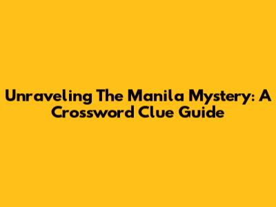 Unraveling The Manila Mystery: A Crossword Clue Guide