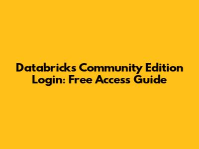 Databricks Community Edition Login: Free Access Guide