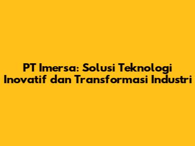 PT Imersa, sebagai solusi teknologi terkemuka, telah mengukir namanya di industri dengan pendekatan inovatif dan komitmen terhadap transformasi digital. Dalam artikel ini, kita akan menjelajahi lebih dalam mengenai PT Imersa, bagaimana mereka memberikan solusi teknologi yang revolusioner, dan dampak positif yang mereka berikan pada berbagai sektor. Mari kita bedah lebih dalam, guys!