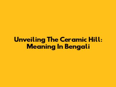 Unveiling The Ceramic Hill: Meaning In Bengali