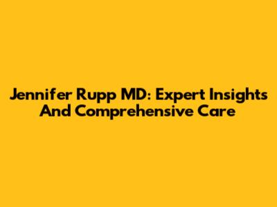 Jennifer Rupp MD: Expert Insights And Comprehensive Care